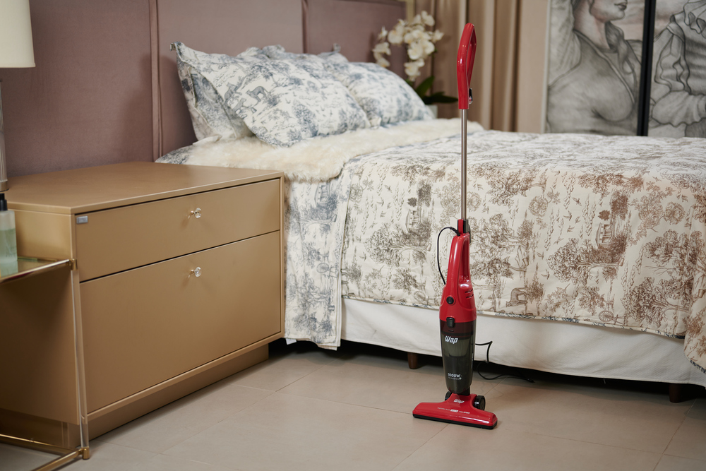 Para uma higienização ainda mais profunda em estofados e caminhas, o uso de um aspirador de pó antiácaro com luz UV é essencial. Verifique também a facilidade de esvaziar o reservatório de pó e a mobilidade do aparelho. Aspiradores de pó sem fio facilitam muito o alcance em cantos difíceis, em cima de armários e debaixo de móveis.
